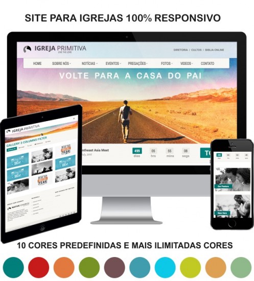 Um site projetado e desenvolvido para Igrejas, Filantropias, Instituições sem fins lucrativos, Portofolio, Corporações e sites religiosos em geral. Um site sensível baseado no Twitter Bootstrap 3.0 que o torna disponível para todos os tamanhos de tela para smartphones resumindo é responsivo (abre em tablet, notebooks, netbook, pcs e celulares). *É POSSÍVEL CONVERTER O SITE EM APLICATIVO ANDROID